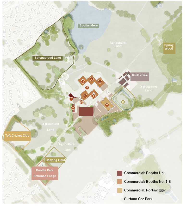 Thank you for visiting our consultation website for Booths Park in Knutsford. Our vision is to create a vibrant, mixed-use community that blends modern commercial spaces, thoughtfully designed homes, and enhanced public amenities, all while preserving the estate’s rich heritage. The development will deliver around 300 new homes in a variety of house types and tenures to meet the local need. Our overall proposals will open the site to the local community – improving accessibility, inclusivity, and creating a more welcoming place for all to enjoy.